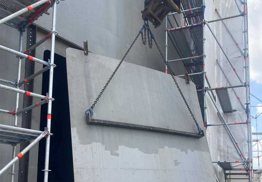 - Einbringung eines Tores (Door-Sheet) in den Tankmantel mittels Hochdruckwasserstrahl (bis zu 3.000 bar)